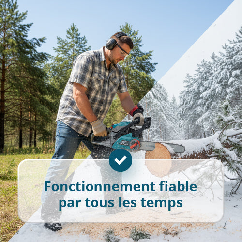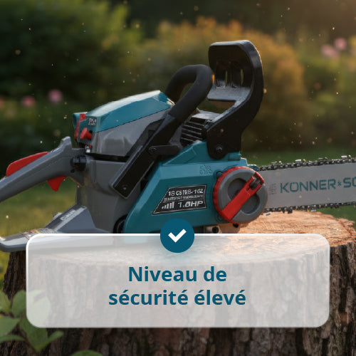 • Niveau de sécurité élevé – le frein de chaîne à inertie arrête immédiatement la chaîne en cas de rebond, réduisant les risques de blessure et permettant de travailler en toute confiance.