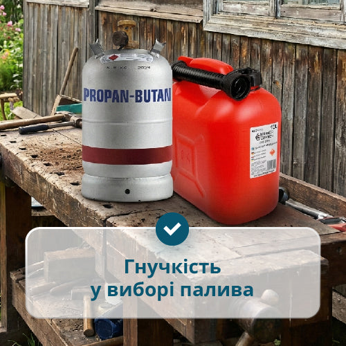 | Тип двигуна | Газовий/бензиновий 1-циліндровий, 4-тактний з повітряним охолодженням |